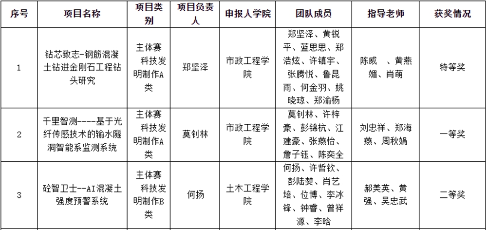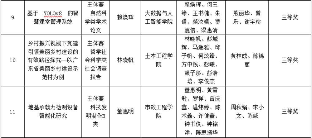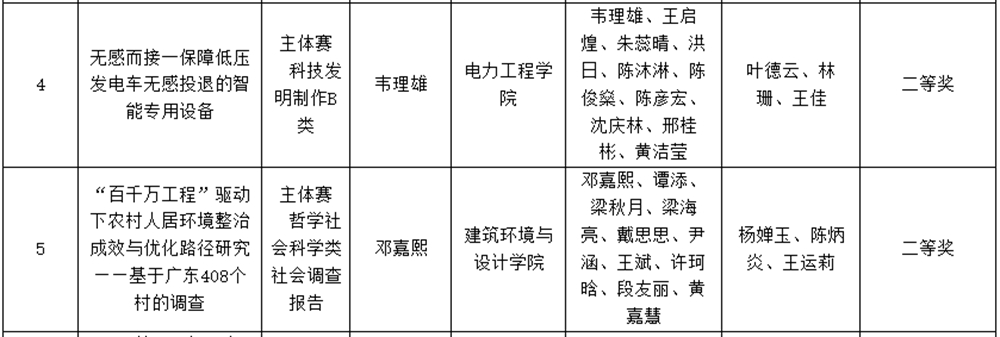 广东水利电力职业技术学院在第十八届“挑战杯”广东大学生课外学术科技作品竞赛获奖名单: