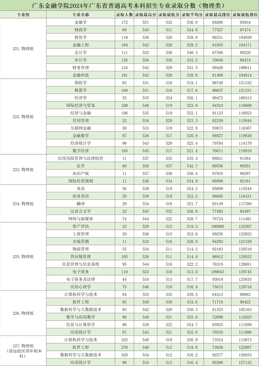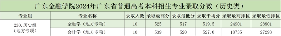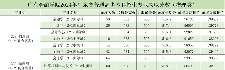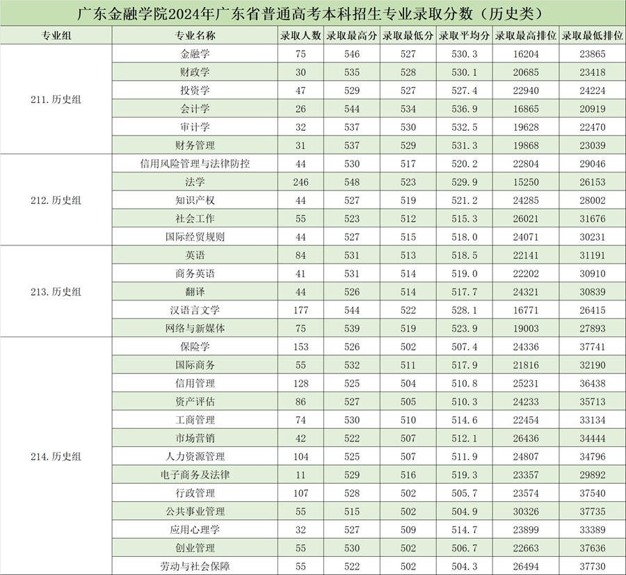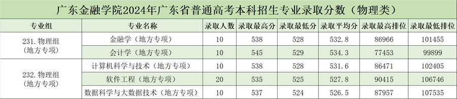 权威发布|广东金融学院2024年广东省普通高考本科招生专业录取分数