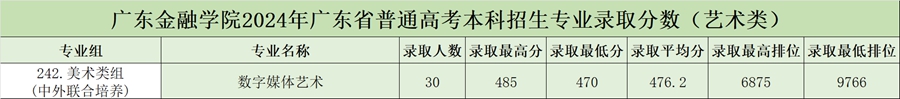 2024年广东省普通高考本科招生专业录取分数(艺术类)
