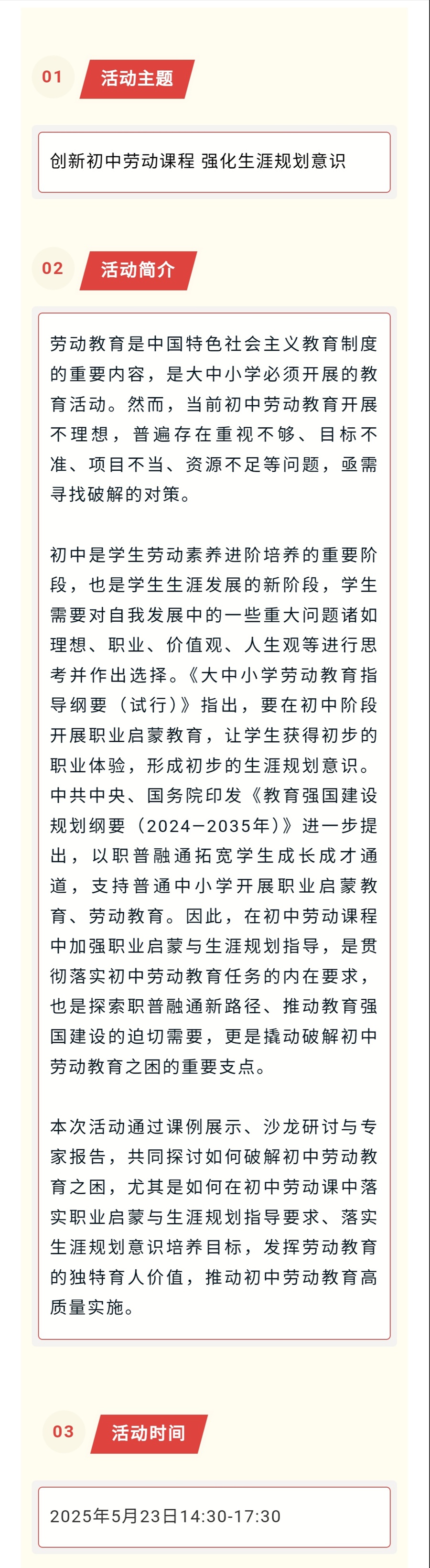 【预告】5月23日 | 南方教研大讲堂第149场(初中劳动):创新初中劳动课程 强化生涯规划意识