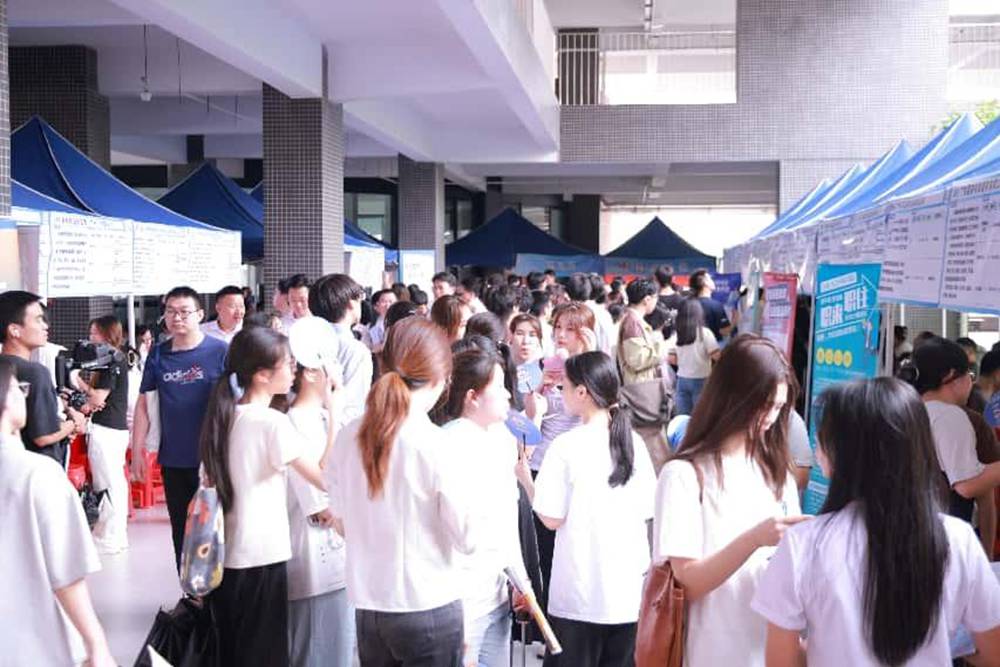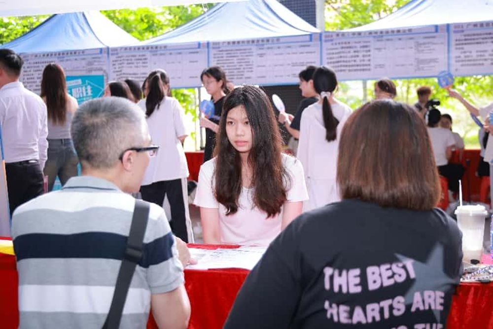 招聘会现场人头攒动,广州高温多雨的天气挡不住学生们求职的热情。前来咨询、登记、投简历的毕业生络绎不绝。他们穿梭于各展位前,查看企业信息、岗位要求、福利待遇等信息、细致比对,精心挑选着自己心仪的岗位。“工作岗位需要什么技能?”“能提供哪些福利待遇?”“工作环境好不好?”职业发展空间如何?”有怎样的晋升渠道?“招聘现场毕业生们不断咨询着他们感兴趣的问题,用人单位的招聘官们也真诚地回答每个问题,双方满意地当场签订就业意向表,需要考虑的也都留下了联系方式。