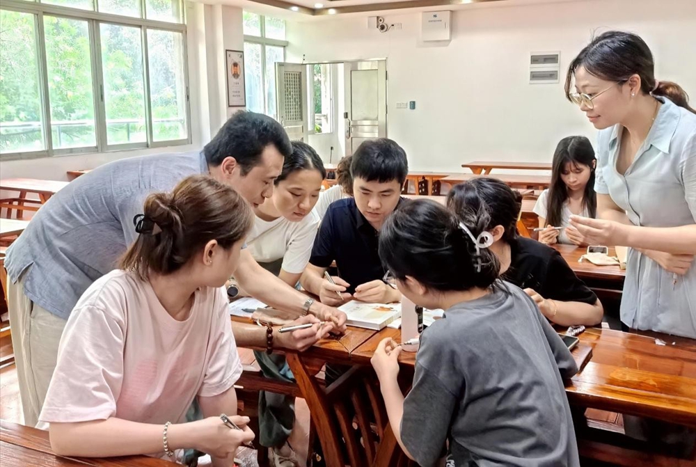 非遗学院作为粤港澳大湾区首个非遗学院和全国非遗传承创新与工艺美术行业产教融合共同体的常务副理事长单位,自2023年成立以来,已聘请24名国家级工艺美术大师和非遗传承人担任外聘教授和非遗智库专家库成员,并邀请11个非遗项目的传承人进校授课,形成了丰富的非遗教学与实践体系。