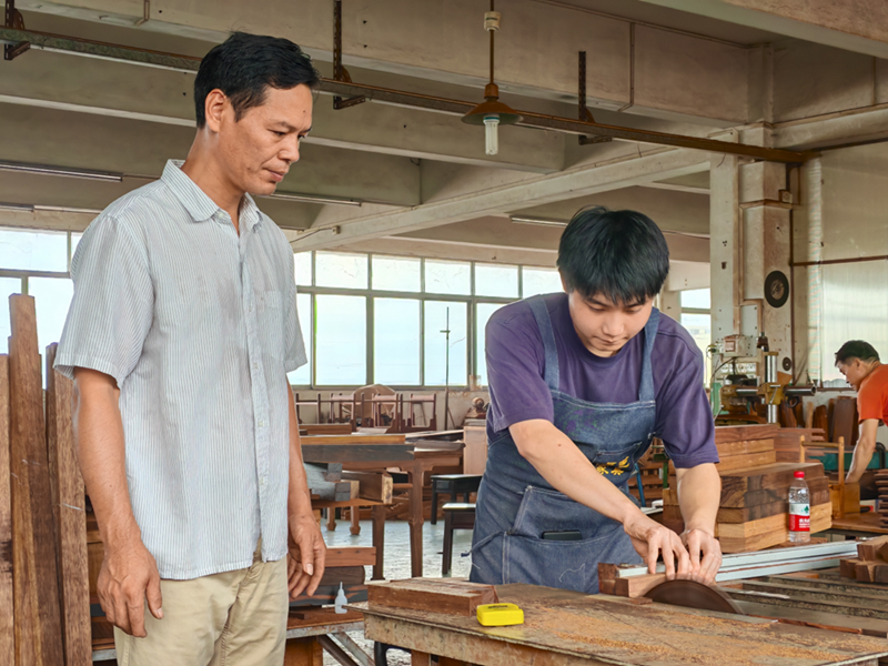 图说:非遗大师卢志江指导我校艺设学子制作广式家具