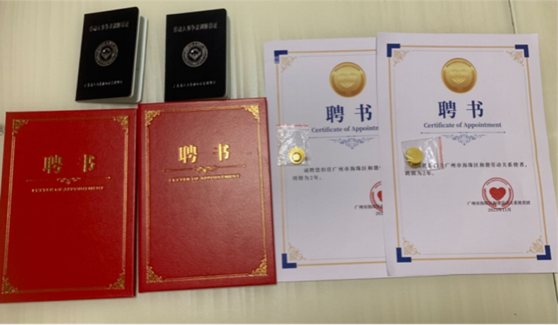 中心教师积极走出去参与劳动关系调解。2023年,罗亮梅、曾炜梅等教师受聘为广州市新业态用工保障联盟调解员。2024年,罗亮梅获聘为“粤港澳大湾区跨境劳动关系服务示范中心专家”。近两年来,她们带领学生团队参与调解网约车司机薪资纠纷、外卖骑手工伤认定等调研5次,其中曾炜梅老师带领2021级吴晓倩在参与广州市海珠区新就业形态多元调解项目中,提出“以提升新就业形态用工保障为核心目标,积极联动社会多方力量,整合社会专业调解资源,运行‘1+N+E’用工争议调解服务机制”的建设实施方案。