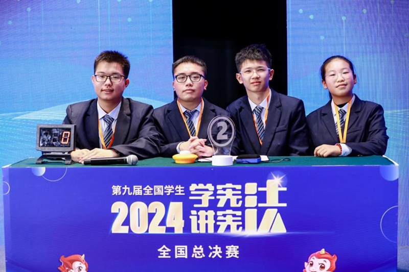法学院李剑雄同学(左二)在第九届全国学生“学宪法 讲宪法” 活动全国总决赛中作为广东省代表团成员之一荣获素养竞赛团体一等奖
