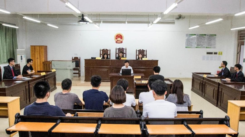依托“法律实务技能强化工程”,通过实践课程模块、专业模拟实训以及专业实习等实践教学环节,系统性培养学生在法律文书撰写、证据分析、法庭辩论、法律谈判等方面的职业核心能力。如今,法学院已与地方法院、律所、仲裁机构共建16个实践基地,主要以穗莞两地的法院、律所为主。近五年来毕业班学生集体实习比例平均不低于50%。
