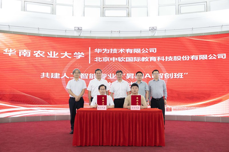 5月22日,华南农业大学与华为技术有限公司、北京中软国际教育科技股份有限公司、广东龙芯中科电子科技有限公司、广州腾科网络技术有限公司等企业举行校企合作签约暨授牌仪式,聚焦人工智能与集成电路领域,共建“昇腾AI智创班”和“龙芯创新班”,在招生选拔、课程建设、项目实训、技能认证、就业推荐等多个维度开展深度合作。