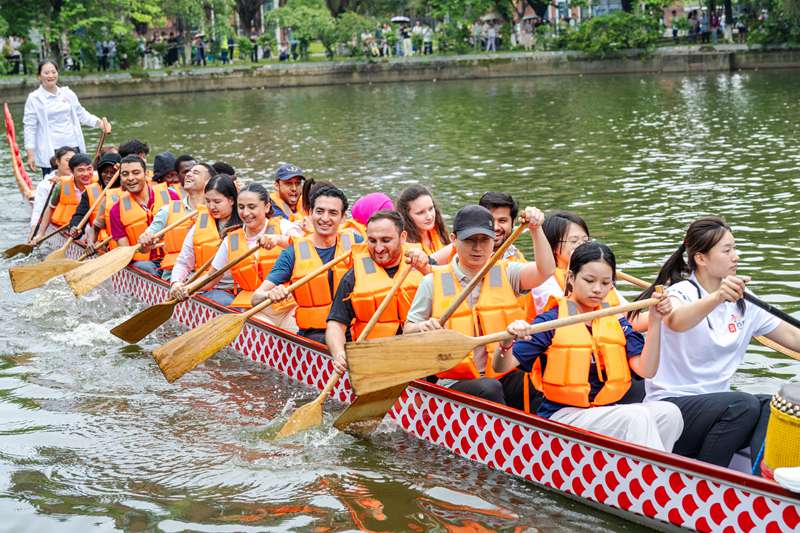 活动现场,10余名留学生格外引人注意。来自津巴布韦的特迪告诉记者,自己了解过一些端午节的习俗,但还是第一次体验划龙舟,这次通过教学已经成功掌握了划龙舟的技巧,“很好玩,感觉非常开心!”来自也门的留学生王子则表示:“这次活动不仅让我们从学习压力之中得到放松,更让我们看到了中华传统文化的博大精深,有机会还会继续参与!”