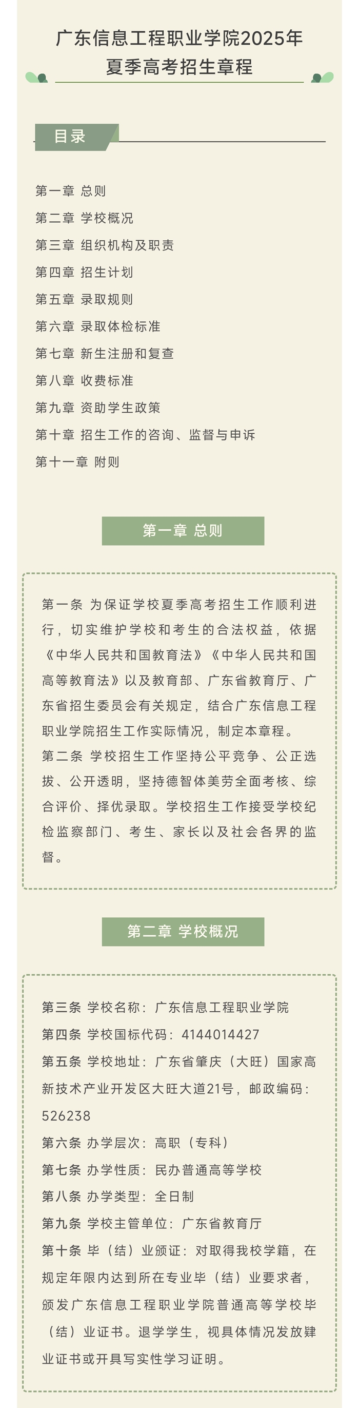 广东信息工程职业学院2025年夏季高考招生章程
