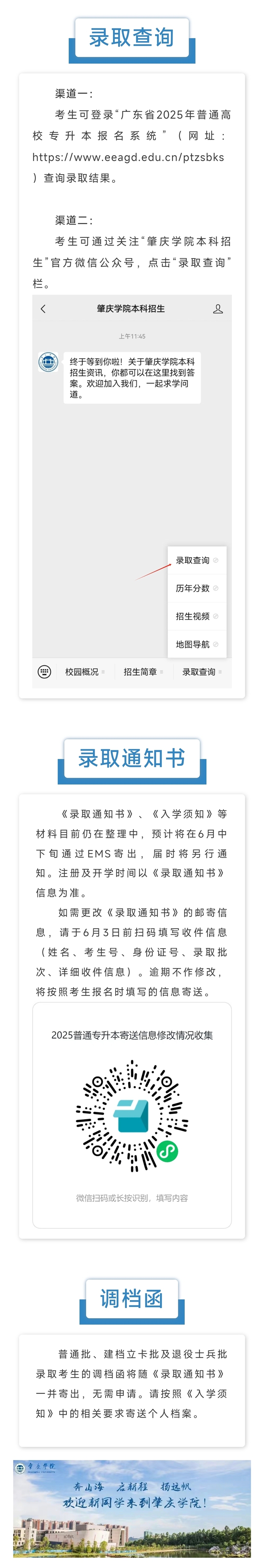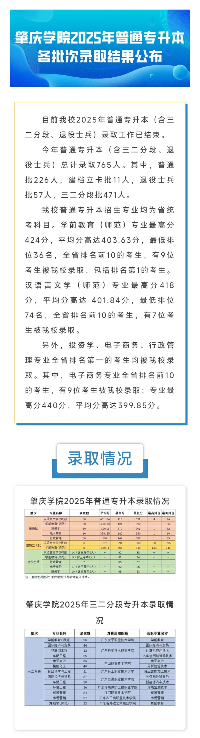 肇庆学院2025年普通专升本各批次录取结果已出!