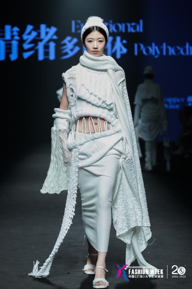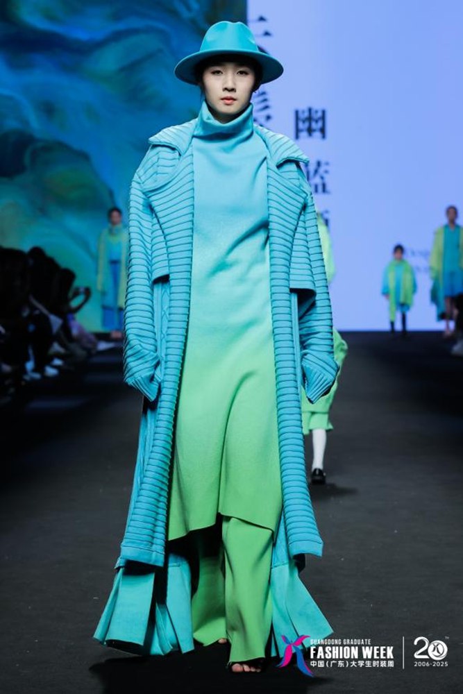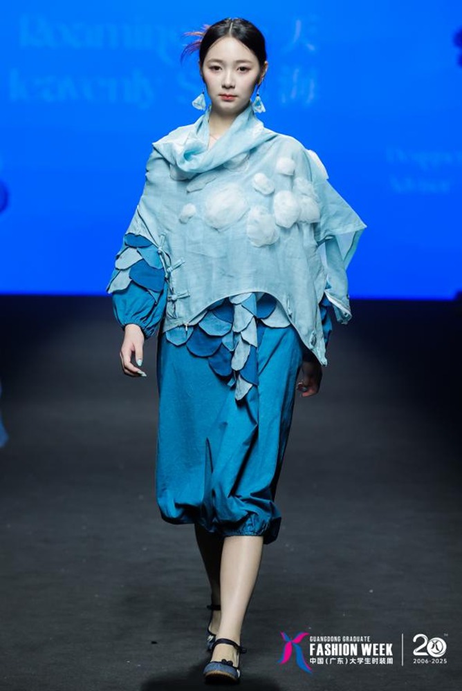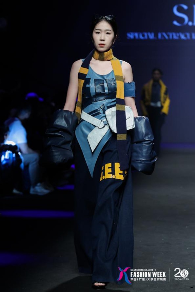 5月26日,广东工业大学艺术与设计学院服装设计毕业作品展演作为2025中国(广东)大学生时装周活动在广州国际轻纺城隆重举行。本次毕业展演以“未•时尚25”为主题,分为“全运GIRLS•精彩亮相”、“ 墨韵工潮· 粤影新章”、“彩绽无界·工擎未来”、“ 青棕织境·艺巧生晖”四个篇章。广东工业大学全运“girls” 正式亮相,她们将以“传播大使”之姿,以热爱之名,为十五运会助力推广。此次毕业作品围绕文化传承、时尚科技、跨界融合三大设计主题,采用智能纤维、可穿戴传感器、多层功能复合材料,将编织、刺绣、植物染等传统手工艺与现代时尚相结合,展开了对未来时尚趋势的无限畅想,开启时尚与科技结合的梦幻之旅。