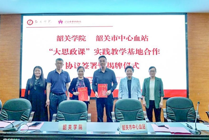 活动当天,韶关学院与韶关市中心血站共同签署“大思政课”实践教学基地合作协议并进行实践教学基地揭牌仪式,充分发挥血站在志愿服务和生命教育方面的资源优势,助力青年学生更好理解奉献精神、生命价值与社会责任。这是继上个月在红军长征粤北纪念馆和南雄市灵潭村建立实践教学基地之后,韶关学院响应“双百行动”号召,深入推进校地共建“大思政课”,强化实践育人的又一重要成果,希望借助基地建设这一举措,校地共同探索“课程+基地+实践”的新模式,让思政课成为塑造学生灵魂、引领学生成长的坚固基石。