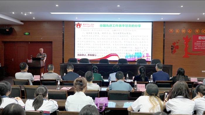 现场教学环节,“全国先进工作者”李慧文走上讲台,向大家娓娓讲述无偿献血的知识。他的讲述仿佛一把钥匙,打开了无偿献血知识的宝库。从无偿献血的发展历程,到严格的血液质量管理,再到温暖的志愿服务,每一个故事、每一组数据,都充实着同学们的知识储备,也在他们心中埋下了奉献的种子。李慧文的“热血故事”,把课本里的“社会公德”讲成了有血有肉的“生命课”。