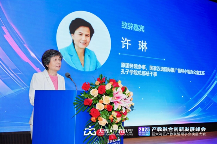 原国务院参事、国家汉语国际推广领导小组办公室主任、孔子学院总部总干事许琳在大会上致辞并传达了国家在产教融合方面的举措。她从政策角度分析了产教融合的重要意义,强调了在新一轮科技革命和产业变革深入发展的背景下,构建产教融合新格局,要立足国家战略需求,突破教育界与产业界的制度壁垒,建立起需求导向的人才培养机制。她指出,站在新的历史方位,产教融合需要更高站位、更宽视野,以更有力举措推动产教融合向更高层次、更广领域拓展,不断推动产教融合深化发展、质量提升。