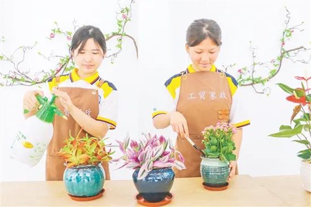 工艺美术专业学生李海琪397分,排名全市第一,成功被深圳职业技术大学录取;现代家政服务与管理专业(以下简称“家政专业”)学生周雪莹379分,成功被韩山师范学院录取,这是中职学生参加广东省职教高考可报考的本科高校中,排名最高的高校……一个又一个励志的学生案例在工贸职校涌现。