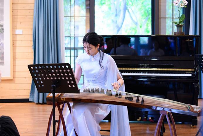 在展览过程中,现场观众还共同欣赏了由学校音乐系师生还带来的精彩的乐器演奏。悠扬的旋律与精美的画作相得益彰,营造出一场视觉与听觉的双重盛宴,进一步提升了师生对艺术的感知与理解。