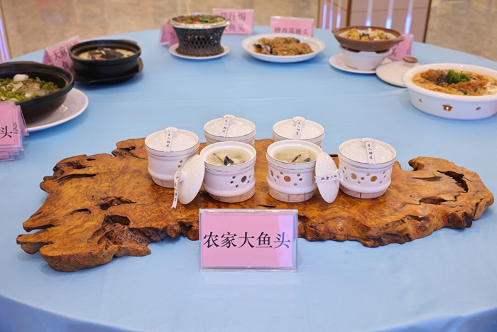 本次活动创新采用“专业指导+大众评审”的双轨制。广州工程技术职业学院餐饮旅游学院派出烹饪专家团队提供技术支撑,同时邀请本土各界代表组成品鉴团。在这场高手云集的厨艺比赛中,15家餐饮单位以石窟河生态鱼头为主料,通过“一鱼百味”的创意呈现,纷纷亮出绝活。经过激烈角逐,最终聚丰酒家报送的《寿乡鱼云羮》,匠人部落报送的《农家大鱼头》,蒸尚鲜大酒楼报送的《蟹肉姜蓉烩拆骨鱼头》等六个作品分获一二三名,这些获奖菜品的独特之处在于,巧妙选用长潭水库鱼、蓝坊丝瓜、广福木耳、南礤鲜笋等当地特色食材,将传统烹饪工艺与现代审美观念完美结合,每一道菜都像是一件精心雕琢的艺术品,既保留了客家美食的原汁原味,又展现出新颖独特的创意。