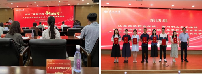5月20日,由高等教育出版社主办、南开大学马克思主义学院和中教华影承办的首届“我眼中的新时代”大学生实践类思政作品入库成果展播活动在南开大学举办。全国16所高职院校入选,广东工贸职业技术学院是广东省唯一一所高职院校,该展播活动被光明网、新华网、全国高校思想政治工作网、思想理论教育导刊等权威媒体报道。马克思主义学院教师代表赵聪应邀出席本次活动。