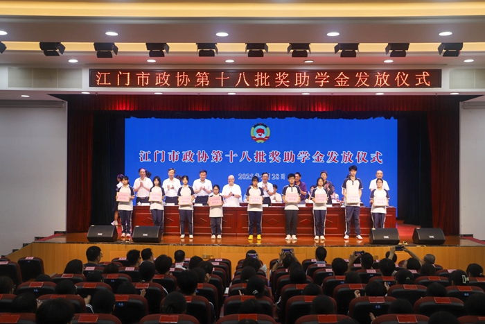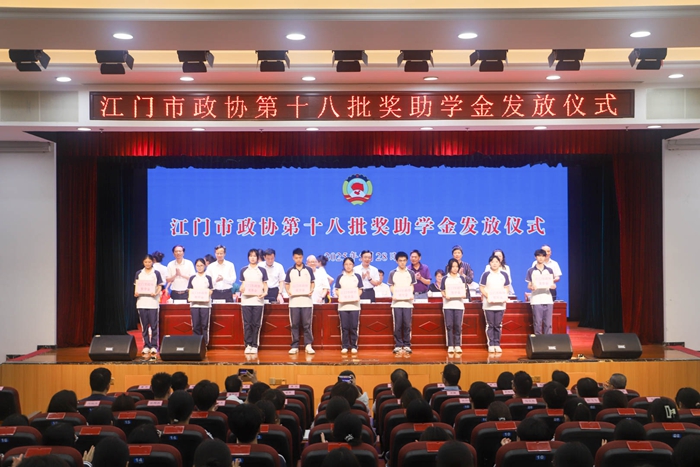 会上,江门市政协副主席周津明宣读了《关于发放江门市政协第十八批奖助学金的决定》。随后,江门市政协、市历届政协委员联谊会领导、嘉宾及学校领导为获奖和受助的学生代表颁发奖助学金。