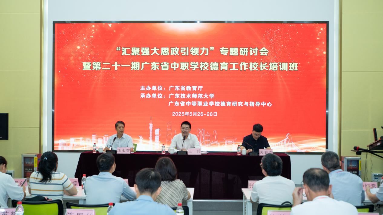 5月26日至28日,由广东省教育厅主办,广东技术师范大学、广东省中等职业学校德育研究与指导中心(以下简称为“省中职德育中心”)承办的“汇聚强大思政引领力”专题研讨会暨第二十一期广东省中职学校德育工作校长培训班在广东技术师范大学顺利举行。学校党委书记王兵,省教育厅思想政治工作与宣传处有关负责同志,省中职德育中心主任等领导专家出席了开班仪式,来自全省近100名中等职业学校的书记和校长参加了本次会议。