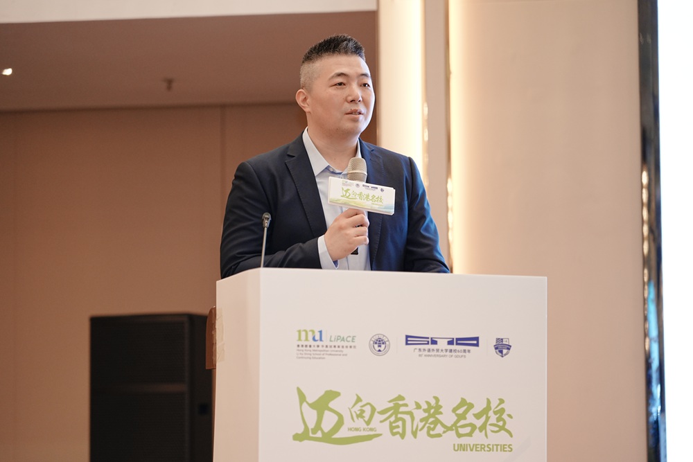 广外国际学院院长助理王勇旗博士着重分享了学院的雄厚办学实力。拥有33年深厚国际化办学积淀的广外国际学院,系教育部留服中心首批6个出国留学培训基地之一。已累计培养输送逾1.3万名优秀留学生,在国际教育领域优势显著。王博士强调,此次合作是学院国际化人才培养定位的重要延伸,创新采用 “内地打基础 + 香港升学历”模式。内地阶段的系统化培养能有效降低学生直接赴港面临的高门槛挑战与学业适应风险,为学生平稳过渡及未来通过副学位平台升读香港名校奠定坚实基础。