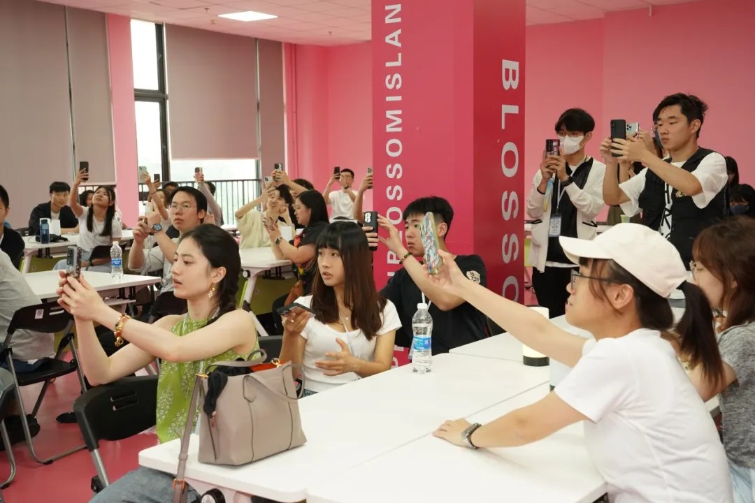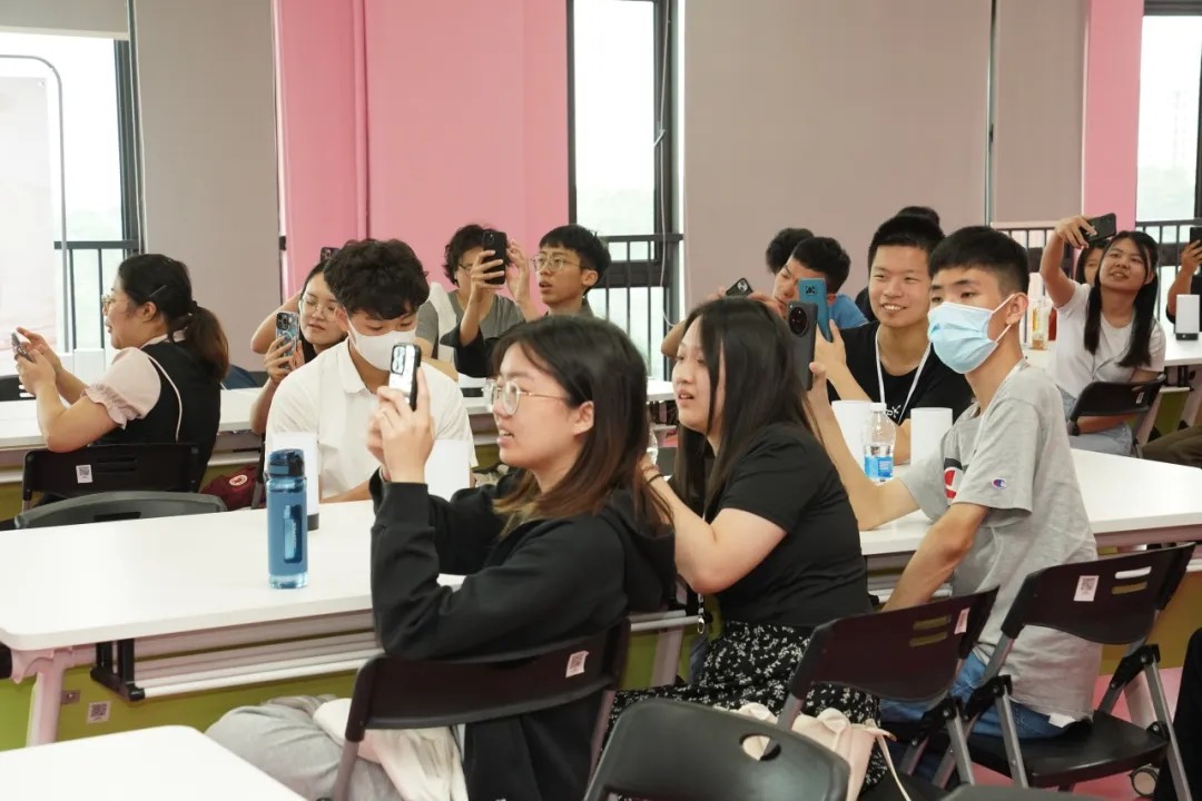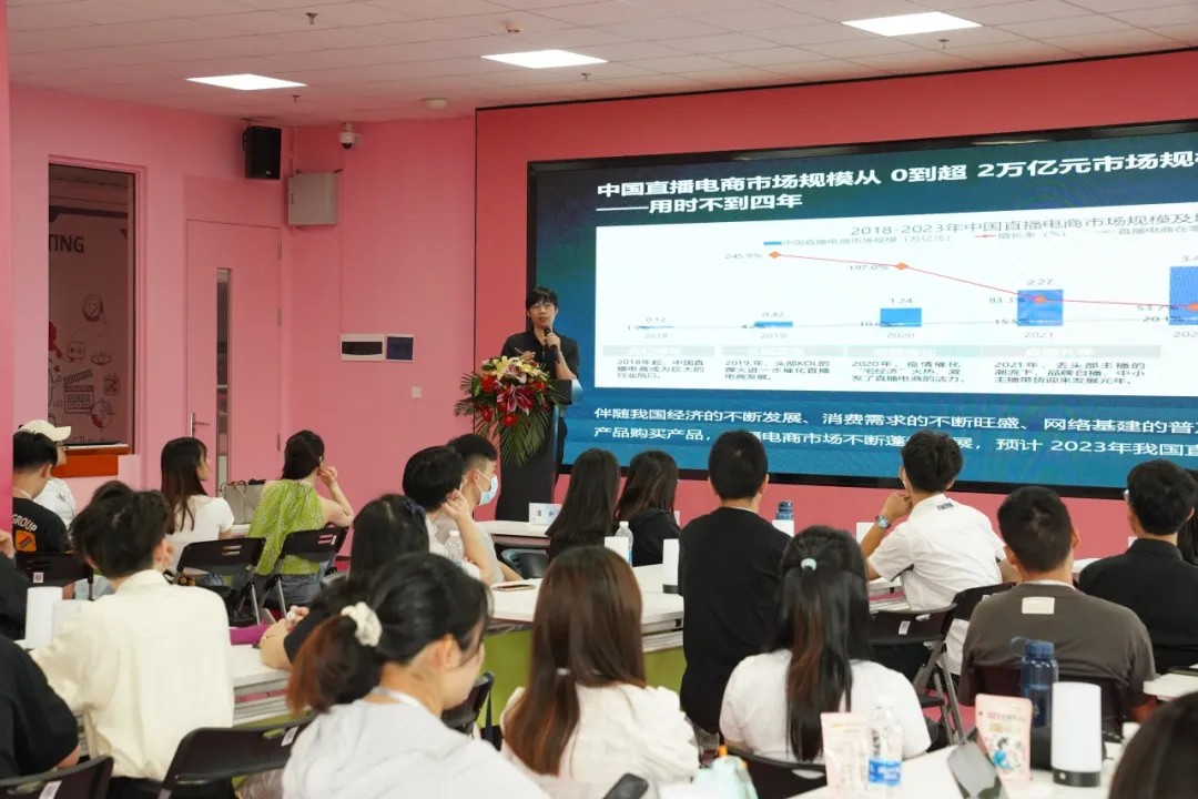 桃花岛企业导师李昌志针对国内电商直播开展案例教学,解析主流平台的直播规则及直播脚本设计的要点,通过企业真实直播案例,剖析选品策略、话术设计及数据复盘方法论,引导同学们结合粤港澳大湾区产业特色,分析国内直播新机遇。学生全程专注记录,并围绕选品、多平台运营等话题展开热烈讨论。