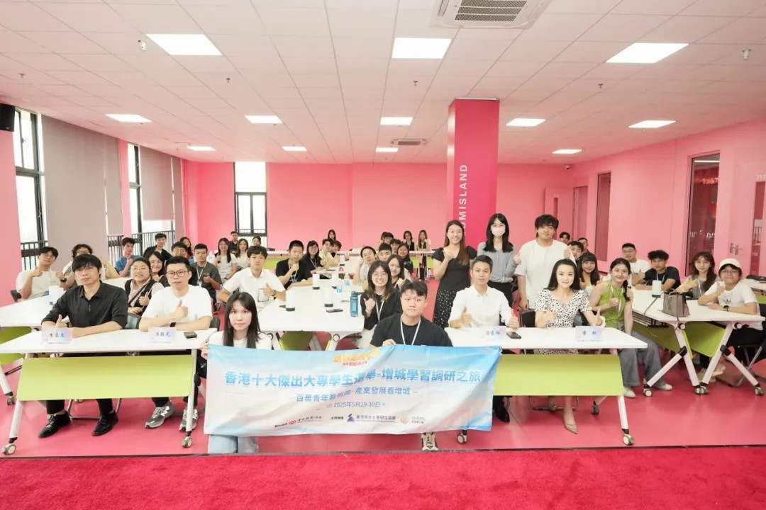 “百万青年看祖国·产业发展看增城-香港十大杰出大专学生选举—增城学习调研之旅”于2025年5月29日—30日在广东省广州市增城区举行,并于5月30日在广州桃花岛电商咨询有限公司产教融合实践教学基地开展电商研学之旅。36名香港青年大专学生通过理论教学与实景操作,系统学习地直播电商运营模式。