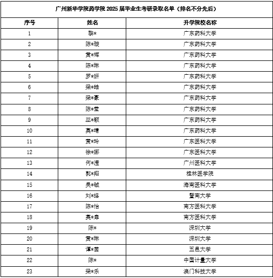 广州新华学院药学院2023届-2025届毕业生考研情况图表