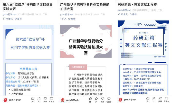 全国大学生医学创新大赛、全国药苑比赛等赛事