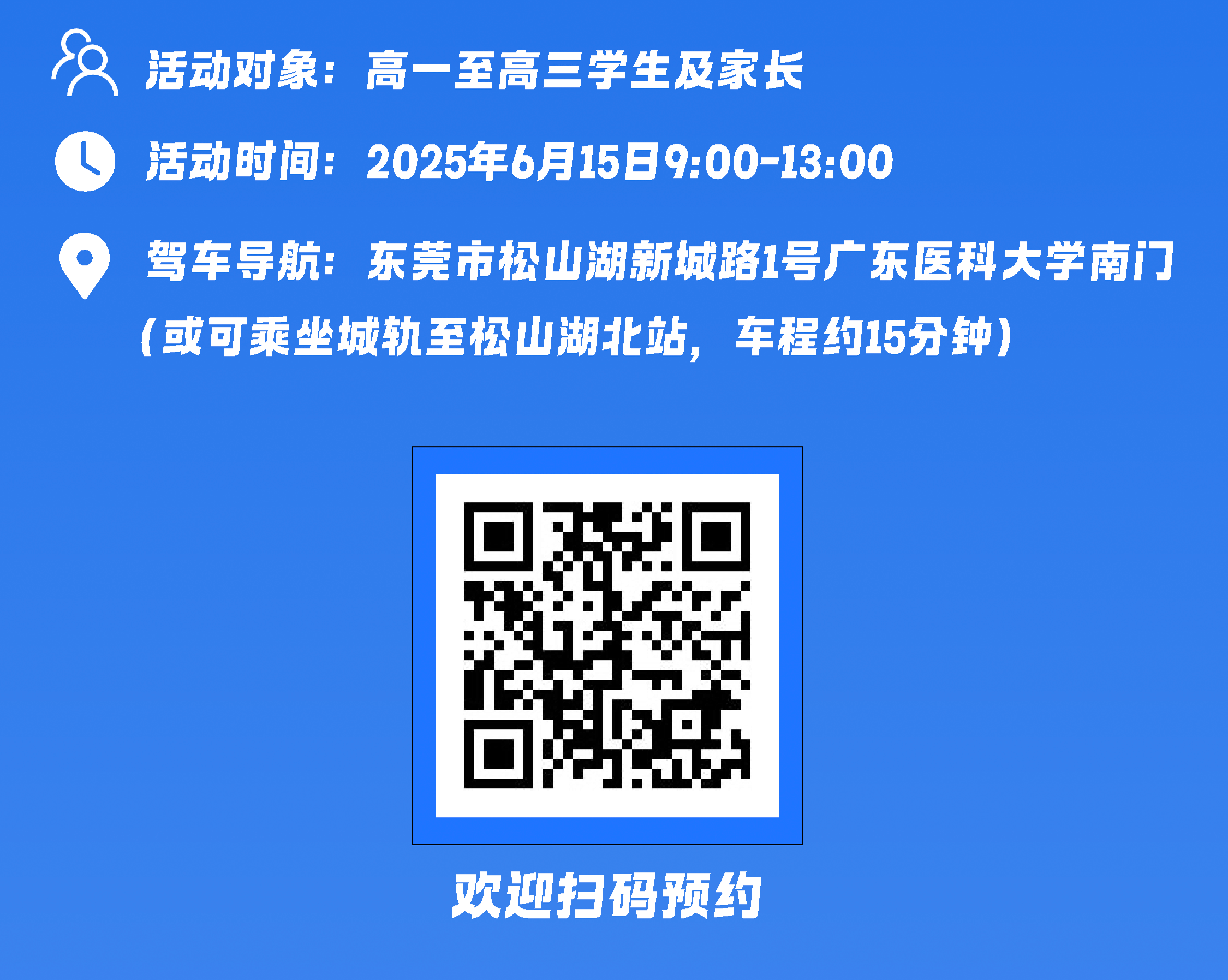 记者了解到,为保障活动有序进行并提供精准服务,本次开放日实行预约登记制度。考生及家长可通过扫描预约二维码进行登记,后续将精准配置停车资源与咨询服务,彰显智慧化管理水平。通过精细化的组织及服务保障,广东医科大学将为每一位来访者创造安全、舒适、高效的参观体验,让考生与家长能够更全面地感受广东医科大学的办学特色与育人环境。