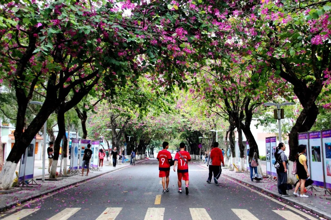 在阳光酒落的紫荆校道上