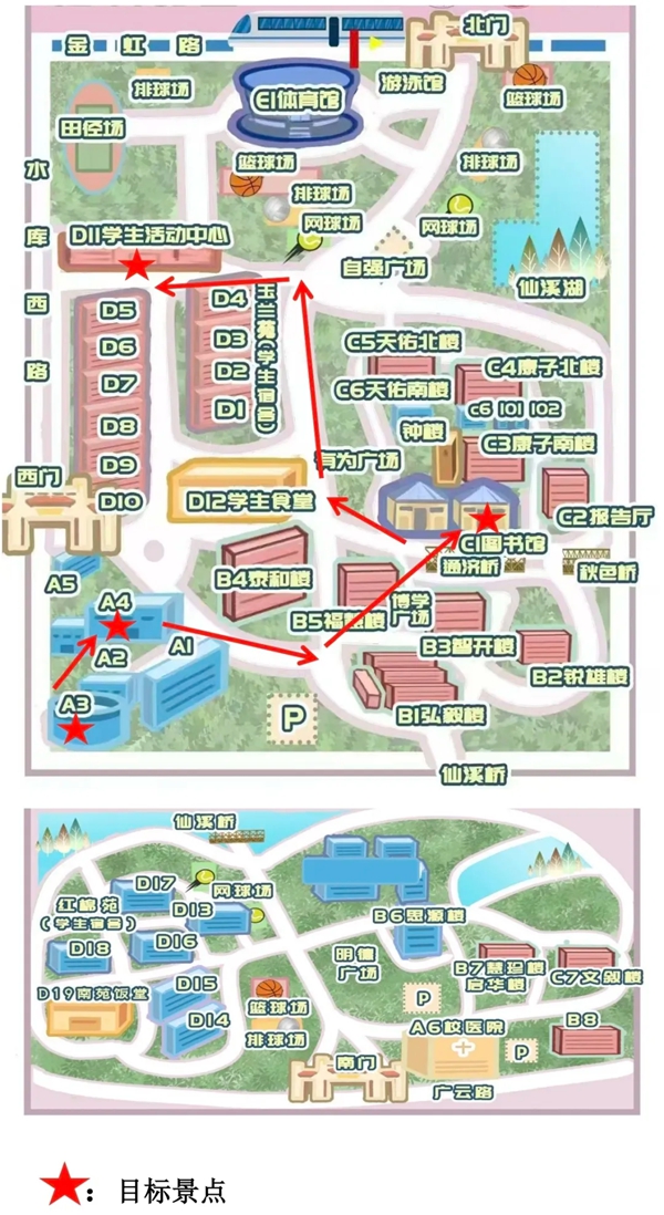 地点:仙溪校区南门、北门、
