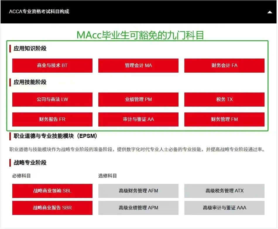 会计学硕士课程已通过ACCA(英国特许公认会计师公会)官方认证。毕业生在报考ACCA资格考试时,可豁免应用知识阶段至应用技能阶段共9门科目,大幅缩短职业资格认证周期,助力学生快速迈入国际财会领域。