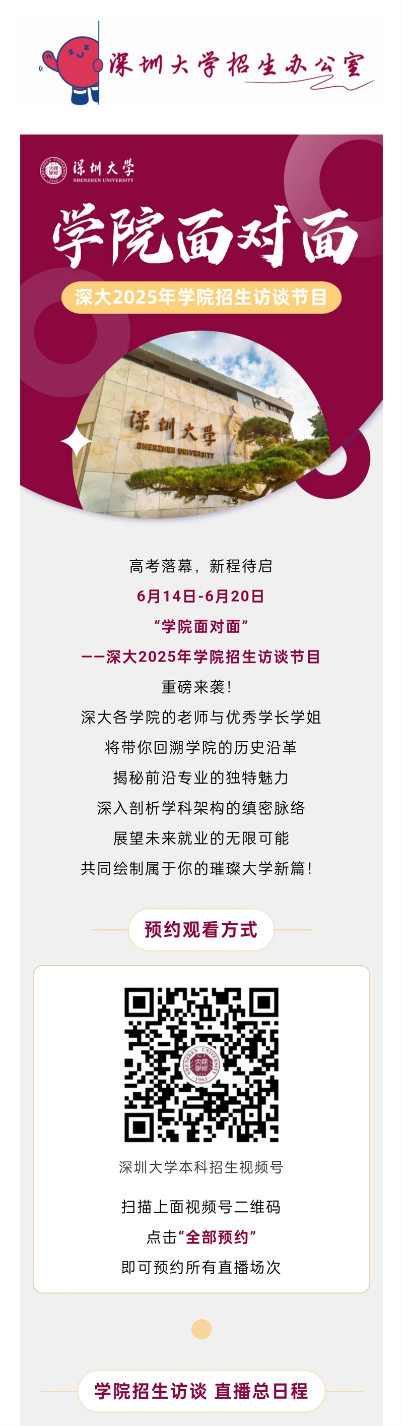 6.14-6.20学院面对面 | 深大2025年学院招生访谈节目即将开播!