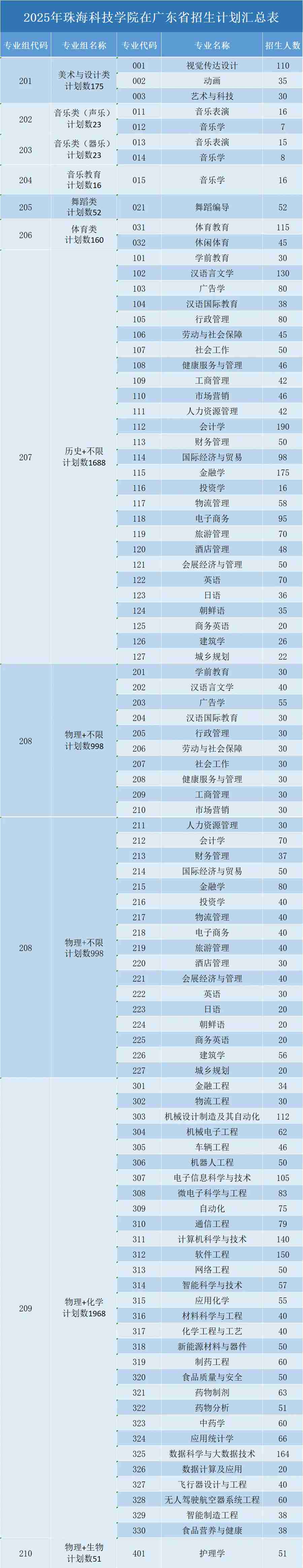 ▲2025年珠海科技学院在广东省内招生计划汇总表