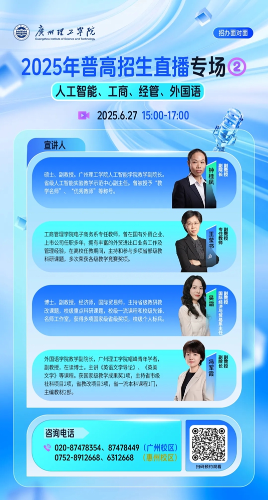 广州理工学院2025年普通本科招生直播预告