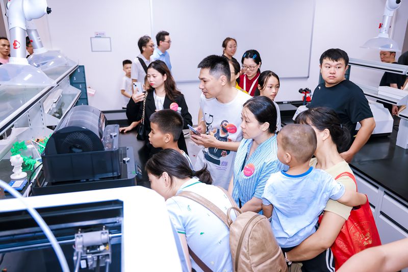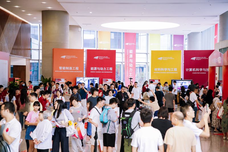 数千名学生和家长实地参观校园设施,包括配备先进设备的实验室、现代化的图书馆、宽敞舒适的双人间宿舍、丰富的运动场地等,直观感受融合科技与人文关怀、宜居宜学的校园环境。活动也通过南方+和信息时报等平台直播,2024级本科学生带领观众线上游览学术与生活空间。