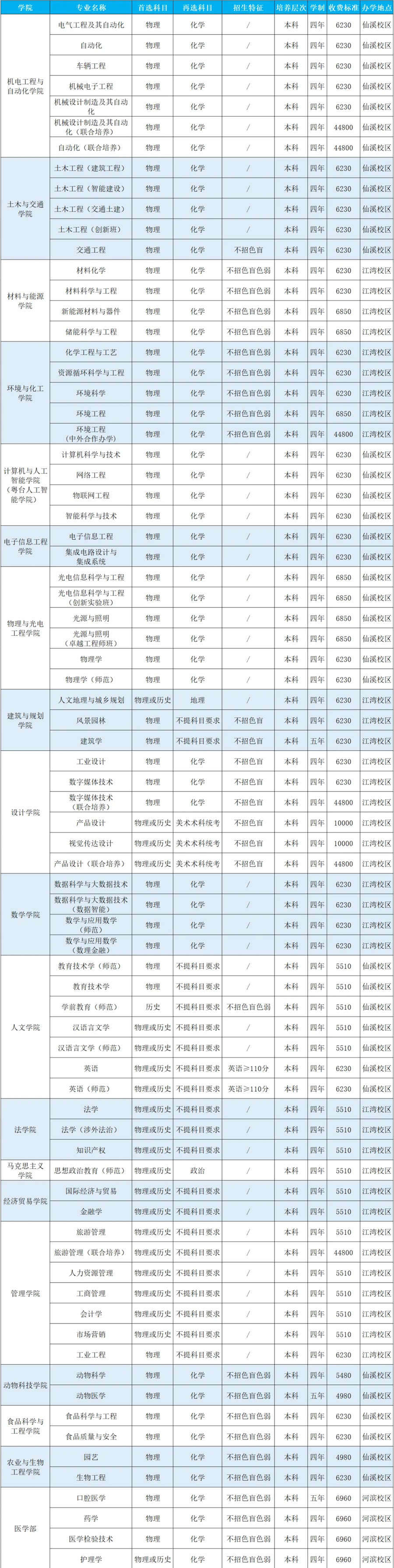 2.学费单位为“元/学年”,所有专业的住宿费均为“750-1700元/学年”;