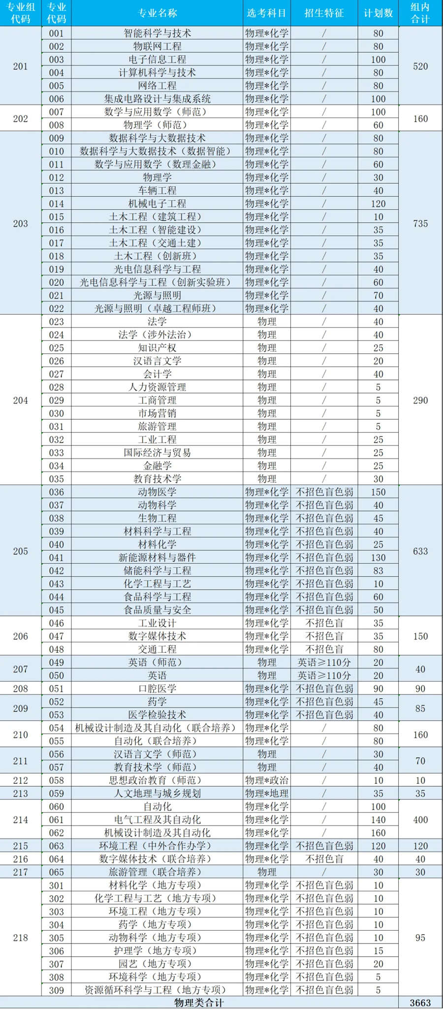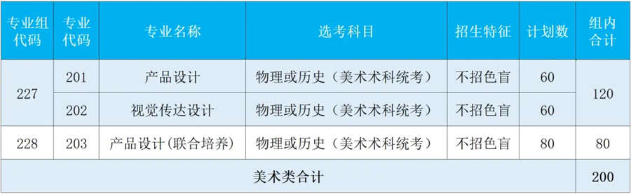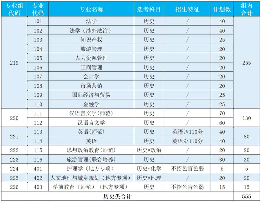 及专业组设置一览表