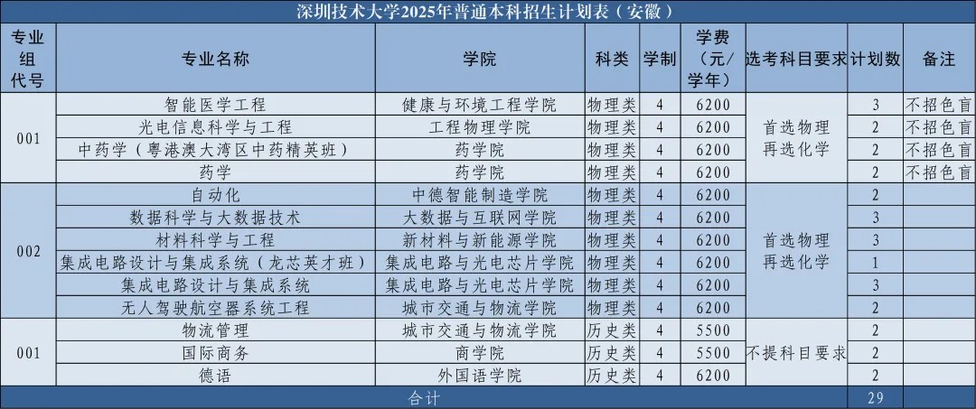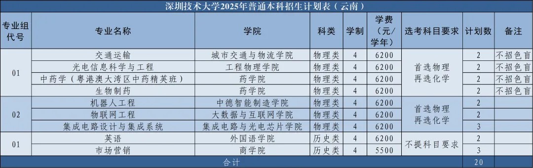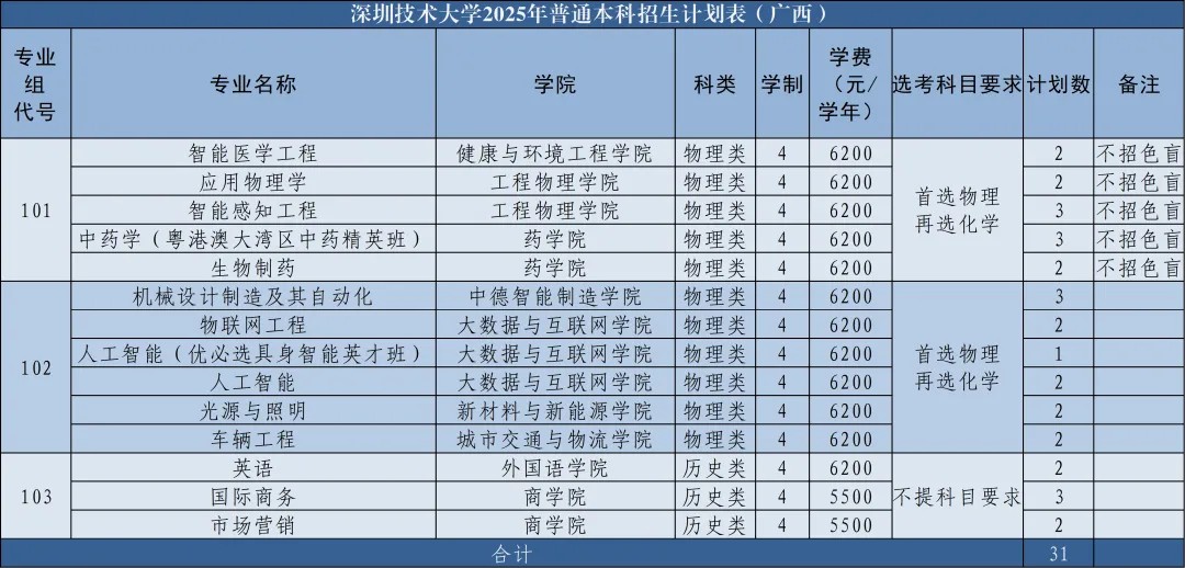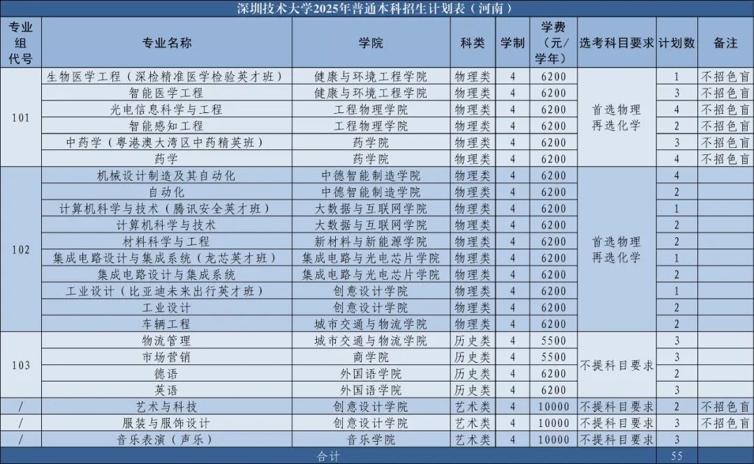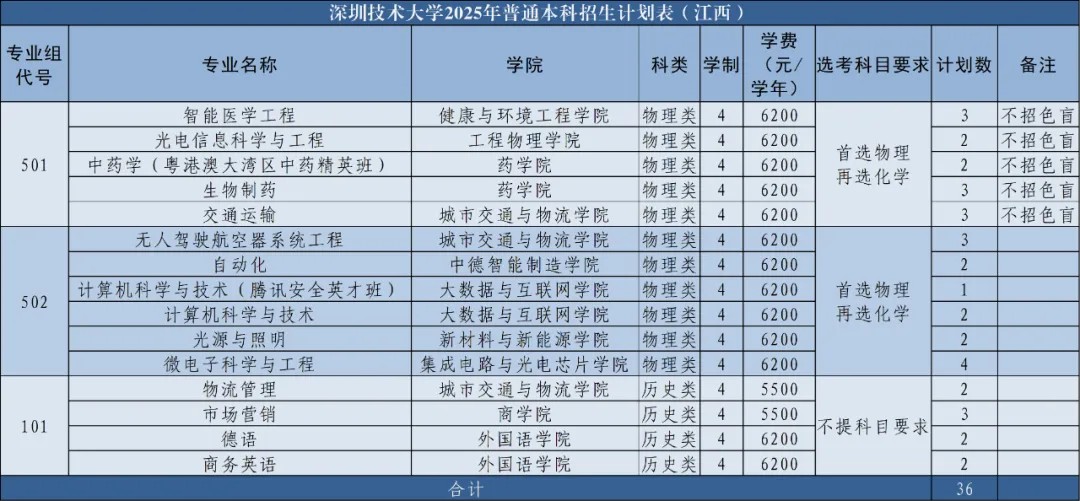 4.交通运输、生物医学工程、智能医学工程、应用物理学、光电信息科学与工程、智能感知工程、药学、中药学、生物制药、艺术与科技、环境设计、服装与服饰设计专业不招色盲。