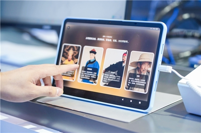 装备展中,两名观众亲身体验了《明末社会危机与农民起义》这一课的学习。根据教学主题设定,系统创设出“崇祯皇帝”、“李自成”、“农民”等多个AI对话智能体。学生可穿越时空连线提问:“农民起义军的行动对当时的政局产生了什么影响?”AI智能体结合史料数据,以角色的口吻和学生交互,引导学生多角度思辨和进一步追问。