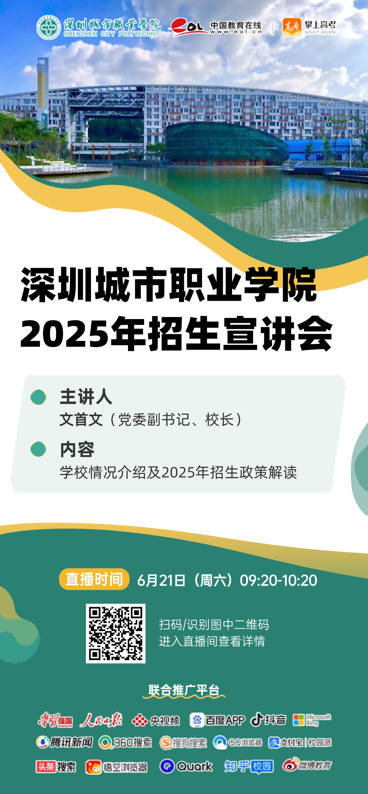 深圳城市职业学院是由深圳市人民政府举办,经广东省人民政府批准、教育部备案的公办全日制普通高等职业院校。学校位于深圳市龙岗区中心城,占地555亩,现有中德智造学院、设计学院、信息与通信学院、商贸学院、珠宝学院等13个二级学院。现有专任教师579人,其中博士、硕士431人,高级职称172人。拥有国家级技能大师、全国技术能手 、鹏城工匠等一批高层次人才领衔的双师型师资队伍。目前建有“深圳市技能型社会研究中心”“龙岗区智能供应链技术重点实验室”等重点研究平台。与华为、亚马逊、西门子等世界500强企业共建了10家现代产业学院,促进高质量就业。学校培养了一批世界拔尖技术技能精英,共获得世界技能大赛奖牌12枚、全国技能大赛奖牌12枚,竞赛成绩名列全国参赛单位前列。