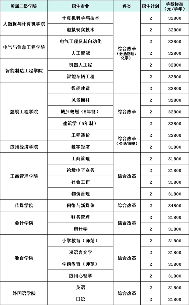2.住宿费标准:西校区3500元/年,北校区4500元/年。其中大数据与计算机学院、曙光大数据产业学院、华为ICT学院、电气与信息工程学院、智能制造工程学院学生在西校区学习生活,其他学院学生均在北校区学习生活。