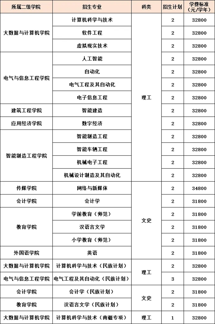 广东白云学院2025年普通本科开设60个专业,招收7979人!