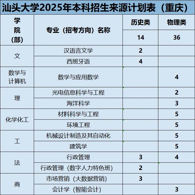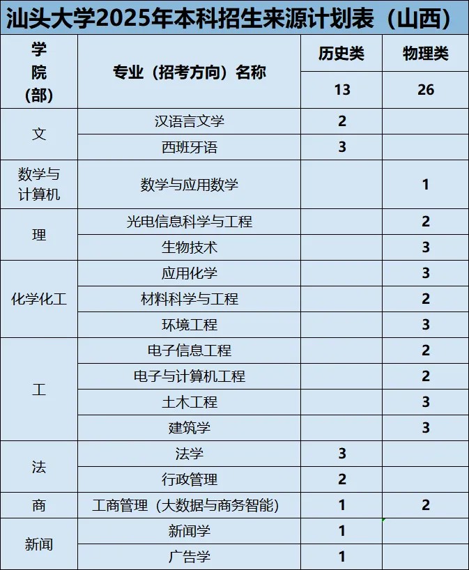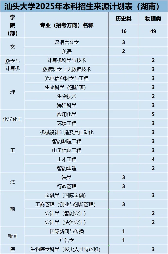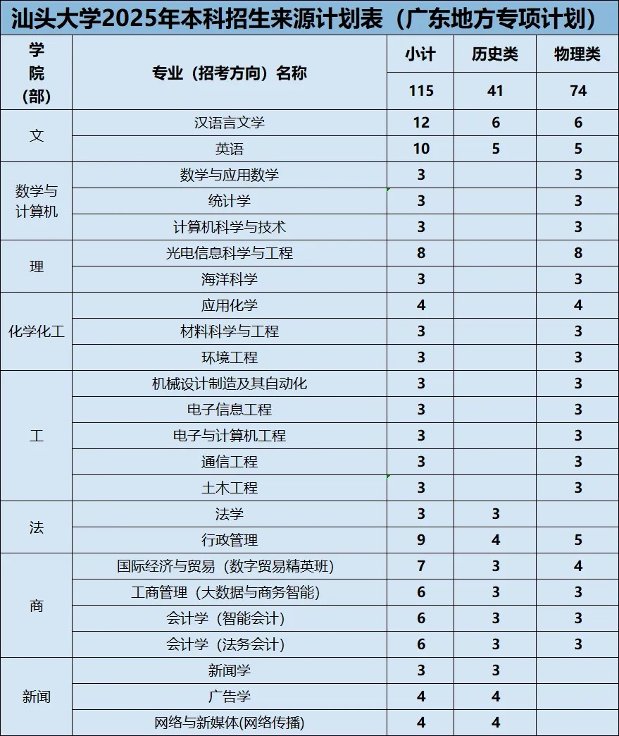 招生省份方面,今年汕大首次增加在黑龙江、吉林、新疆、云南、贵州等5个省份的招生,招生范围扩至25个省份。其中,广东、山东、广西、河北、河南、湖南等9个省份的招生计划均有不同程度的增加。
