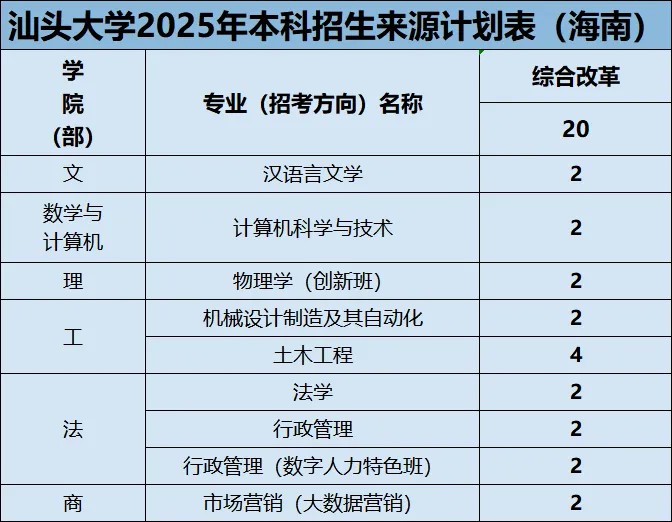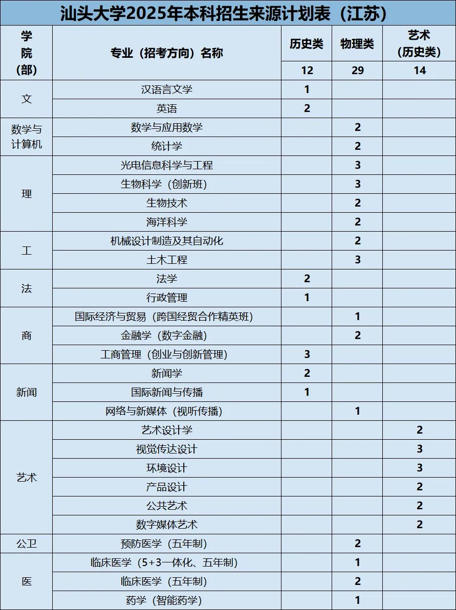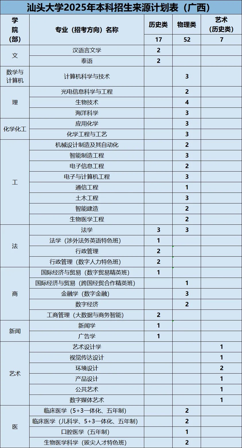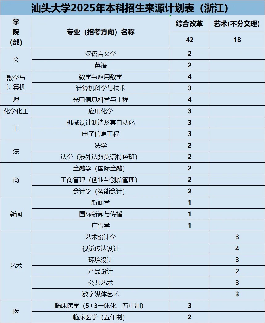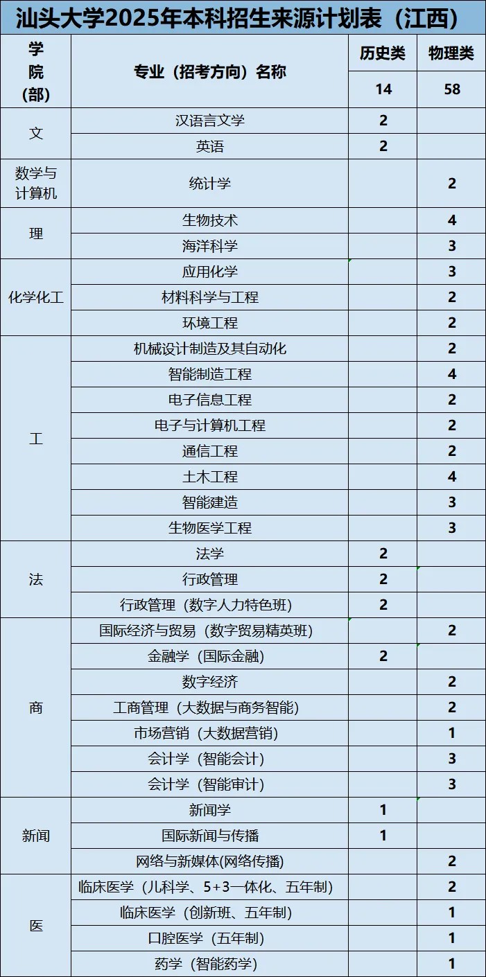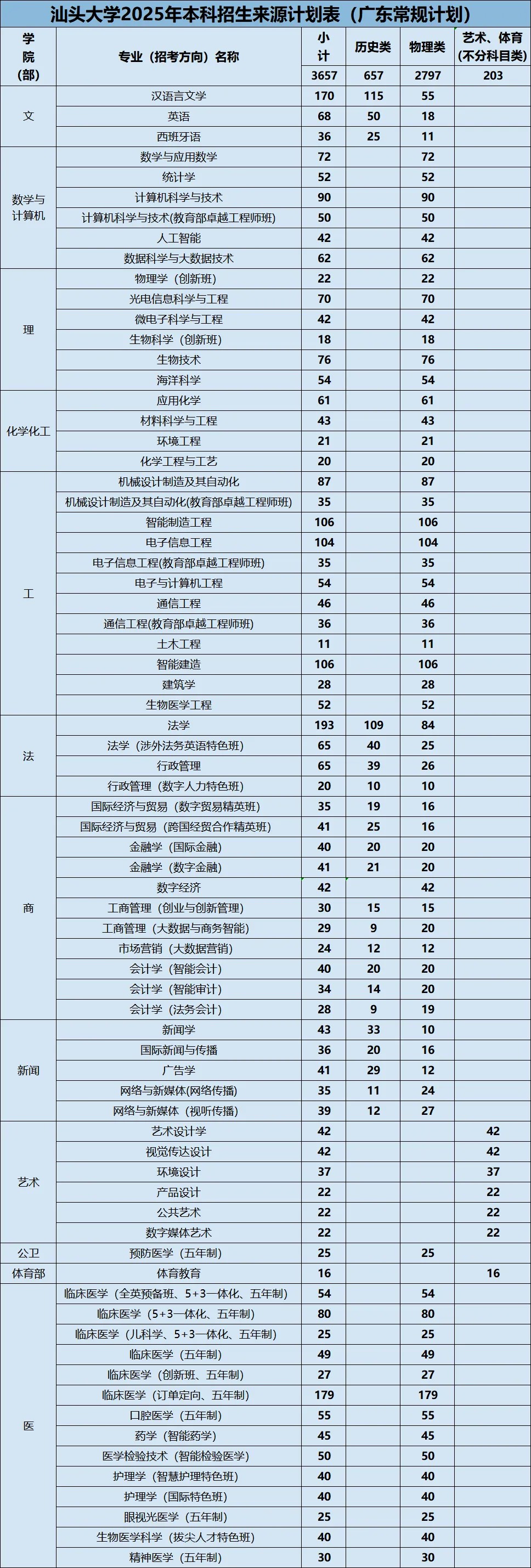 2025年,汕头大学在广东招生共设置31个专业组。其中,校本部14个,医学院17个。