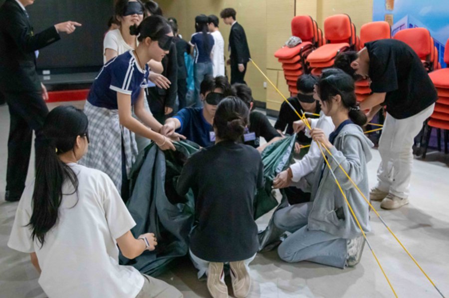 这正是特训营的“破冰密码”:没有照本宣科的理论灌输,只有“职业角色情景剧”“团队协作闯关赛”“心灵树洞分享会”等沉浸式体验。比如第二天的“领袖风采”环节,学生们要分组完成“校园文创产品设计”,从市场调研、成本核算到路演答辩,全程模拟真实创业场景。“我们组设计了‘岭南非遗扎染’笔记本,李校还亲自当‘投资人’,问我们‘成本多少?目标客户是谁?’”电子商务专业的学员挠着头回忆,“一开始手忙脚乱,后来发现——原来上课学的‘市场分析’‘营销策略’,真的能用在‘卖东西’上!”