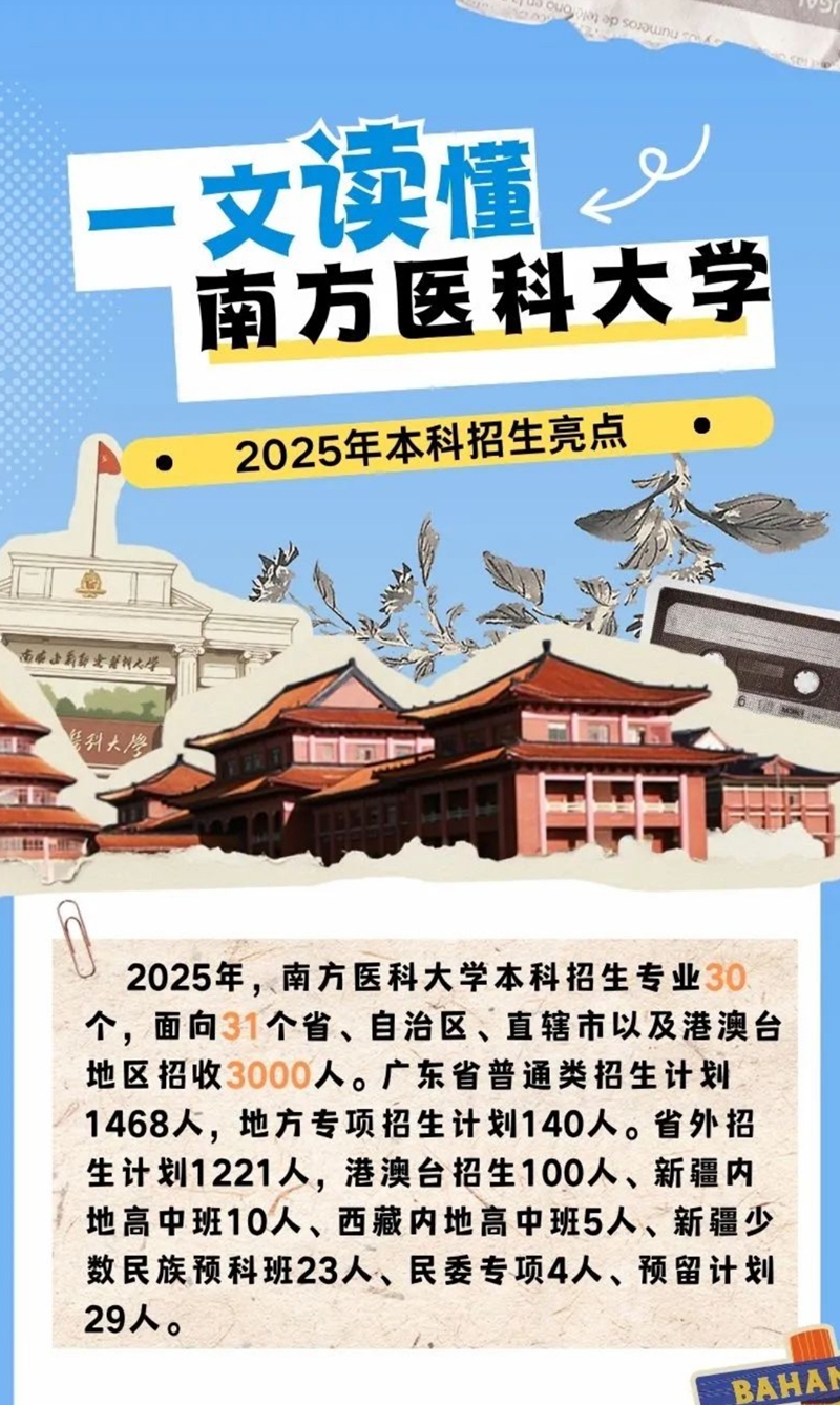 南方医科大学2025年普高招生计划3000,新增智能医学工程等4个专业和方向!