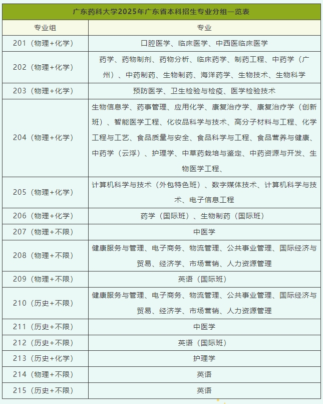 点击二维码查看广东药科大学2025年广东省本科招生专业分组一览表
