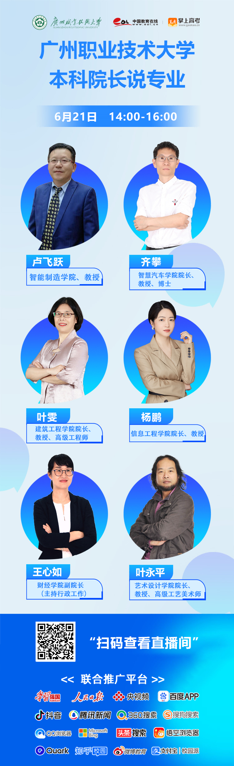 6月21日,锁定广州职业技术大学直播间,让院长们为你点亮专业选择的明灯!